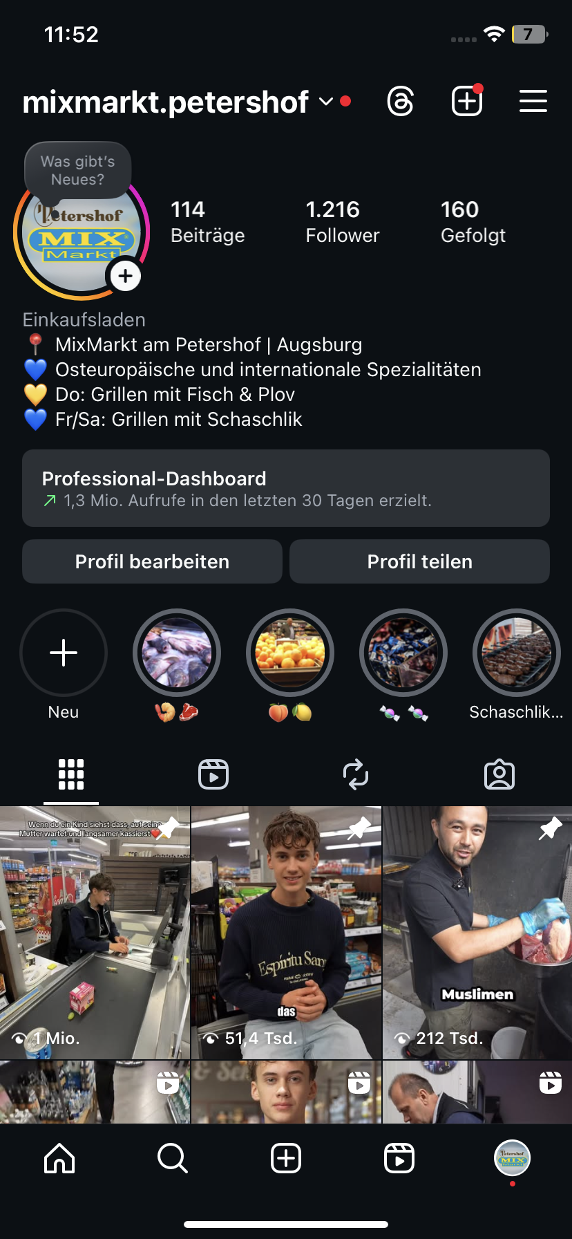 Nach nur drei Monaten Zusammenarbeit explodierte die Sichtbarkeit: Über 5.500 neue Follower, 11 Millionen Aufrufe und seit Wochen geht jedes einzelne Video viral. Das Ergebnis: MixMarkt Petershof ist heute der bekannteste MixMarkt Deutschlands und zieht täglich neue Kunden in die Filiale.