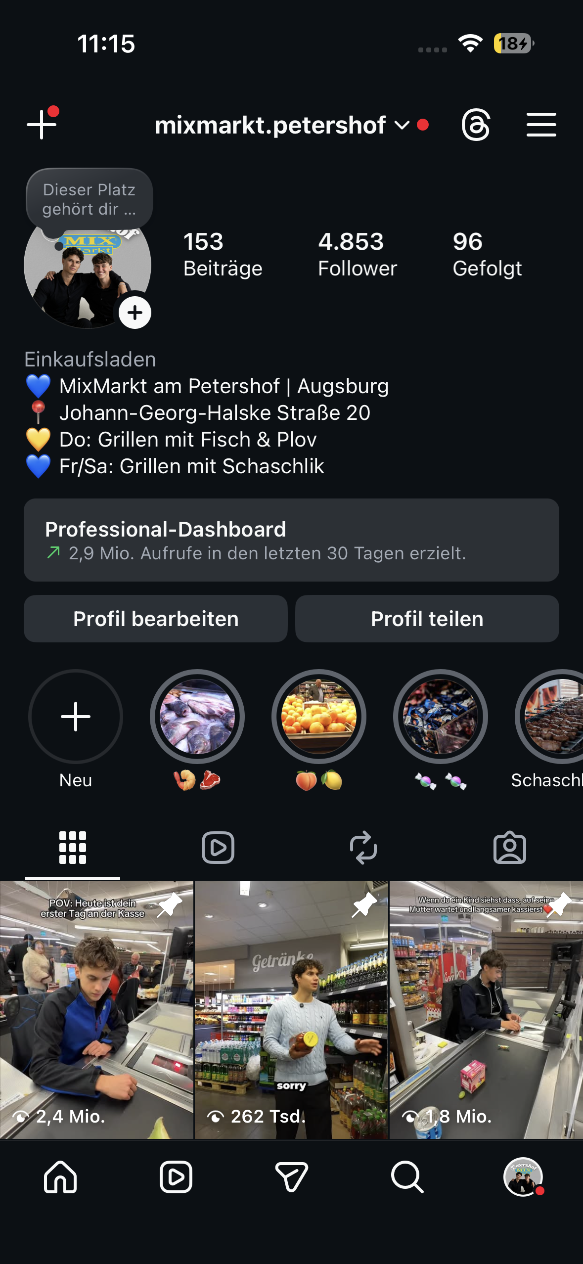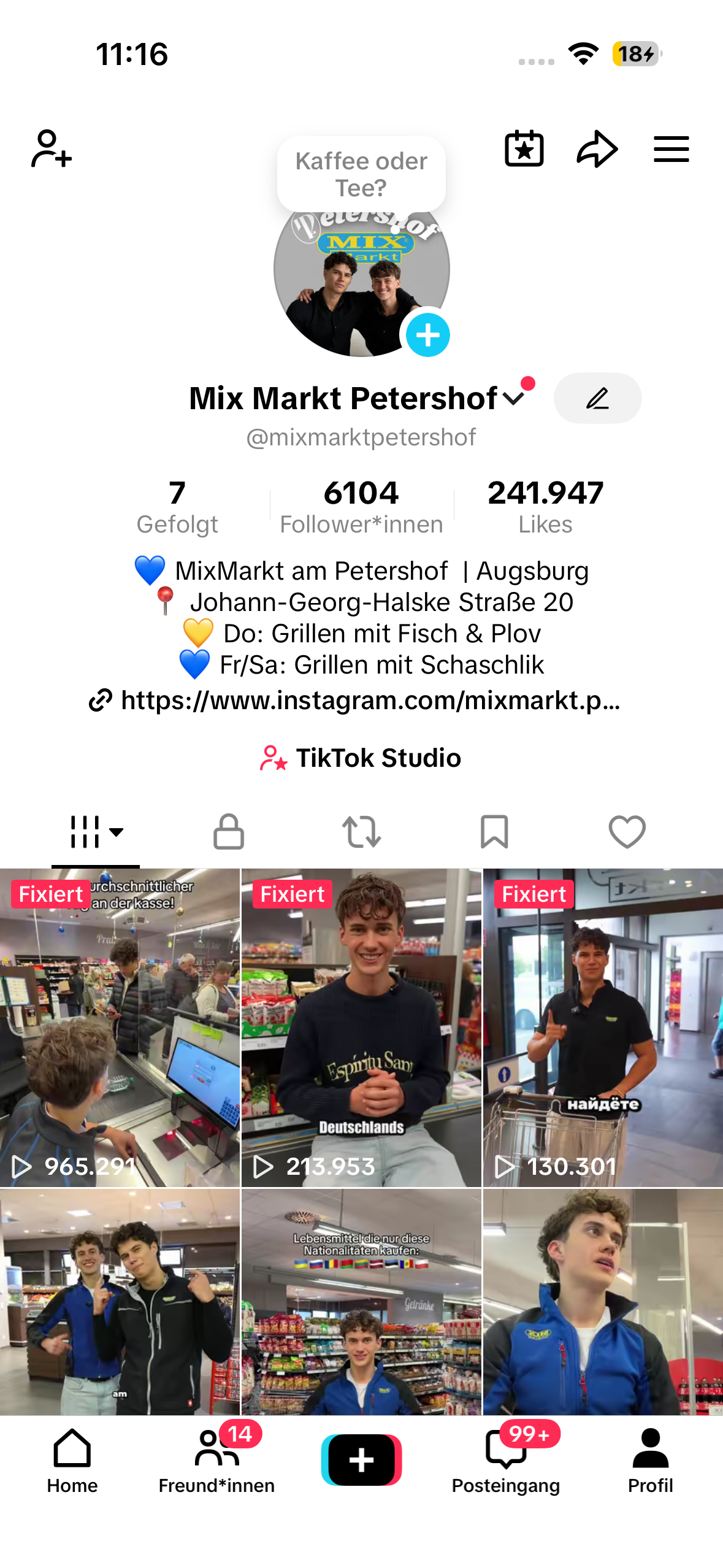 Nach nur drei Monaten Zusammenarbeit explodierte die Sichtbarkeit: Über 9.500 neue Follower, 14 Millionen Aufrufe und seit Wochen geht jedes einzelne Video viral. Das Ergebnis: MixMarkt Petershof ist heute der bekannteste MixMarkt Deutschlands und zieht täglich neue Kunden in die Filiale.