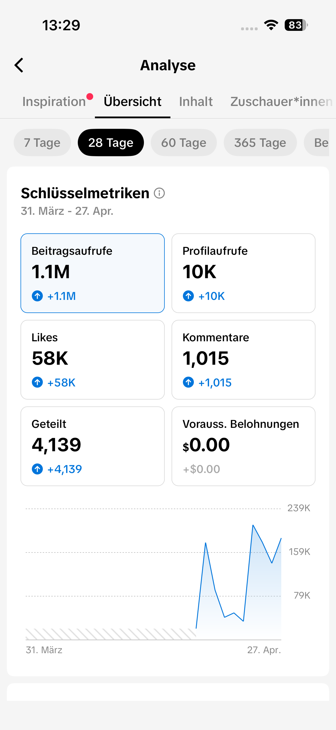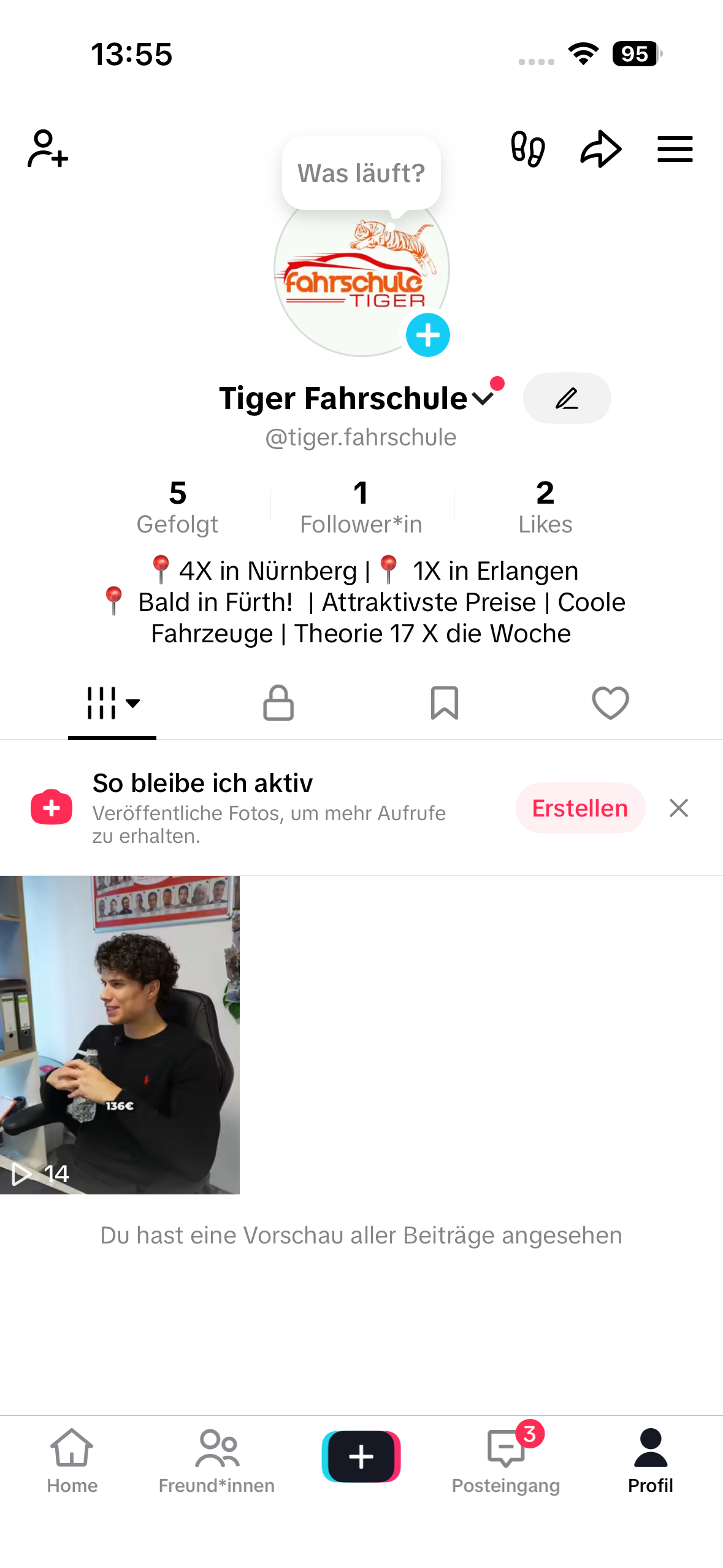 2.200.000 Aufrufe, 4.300 neue Follower und das mit den ersten 12 Videos. 12 Videos, die ohne Werbebudget dafür gesorgt haben, dass jeder jugendliche in Nürnberg Fahrschule Tiger gesehen hat.